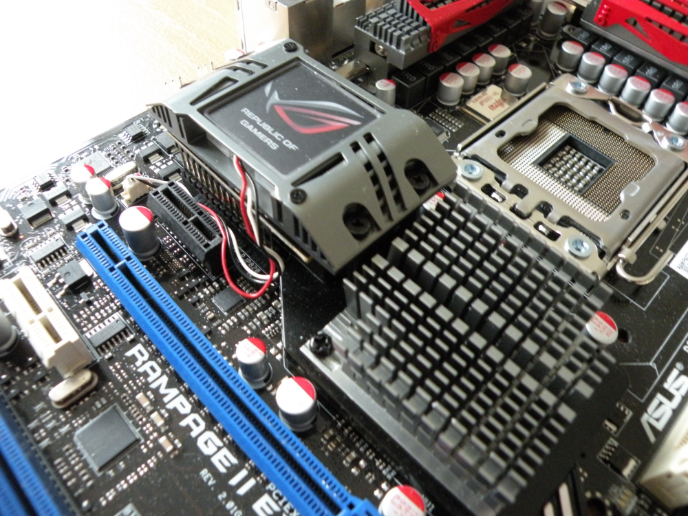 Det nytter ikke noget at pille strømkablet fra den generende blæser, for efterfølgende bliver bundkortet brandvarmt. Køleren kan - sammen med køleelementet ved processorsoklen, den såkaldte mosfet-køler - også udgøre et problem, afhængigt af hvilken processorkøler der benyttes.