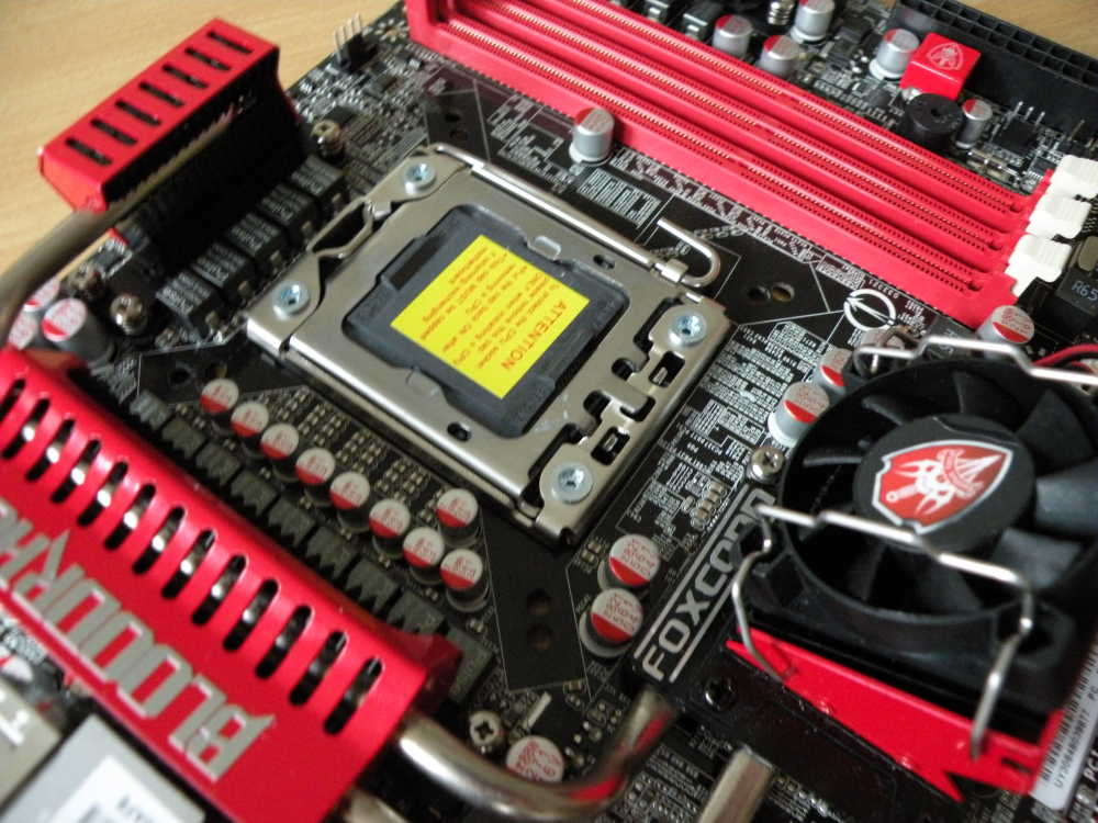 Den fysiske udformning er i særklasse, og med tilføjelsen af yderligere fire monteringshuller omkring processorsoklen har Foxconn åbnet muligheden for, at du kan installere en almindelig LGA 775-køler uden dikkedarer.