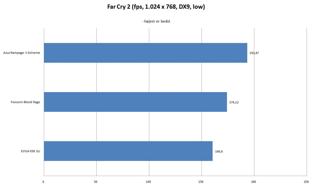 Til en pris på knap 2.400 kroner står det klart, at EVGA's første bud på et X58-bundkort på flere punkter ikke kan følge med de veldrejede Rampage II Extreme- og Blood Rage-kort, der både har tilbehørspakken i orden, formidable layoutvalg og ganske attraktive priser. Ydelsen er desuden en bekymring - særligt i spiltesten, hvor de to GTX 295-grafikkort ikke formår at bide fra sig og leverer et decideret skuffende resultat i vores Far Cry 2-benchmark.