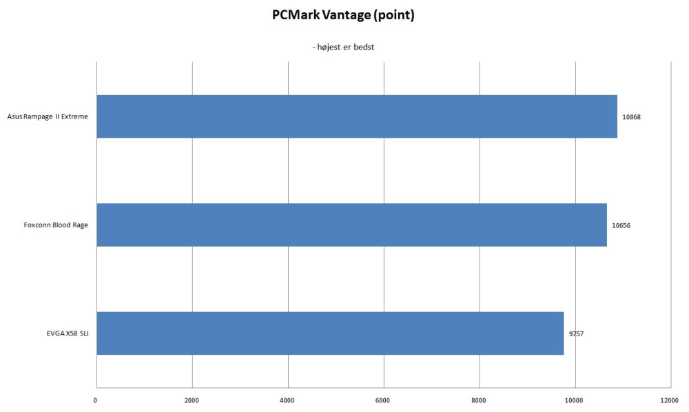 Når Foxconn Blood Rage ikke formår at indtage førstepladsen, skyldes det tilgængelighedsproblemet, at ydelsen ligger lidt bag Asus Rampage II Extreme, og at vi havde foretrukket yderligere tre hukommelsessokler.
