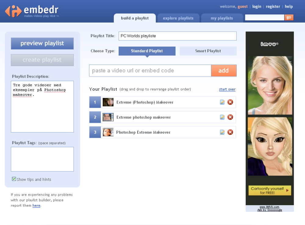 Det er nemt at dele en håndfuld link til online videoer med hjælp fra Embedr.com. Du smider blot dine link ind i webtjenesten, og den sørger for at oprette en playliste.
