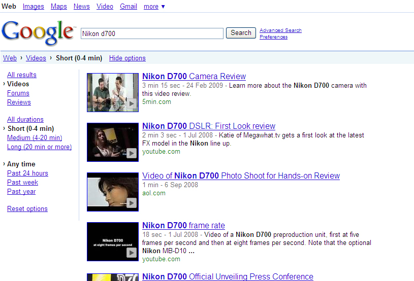 Du kan også vælge kun at få vist videoer og justere søgningen, så det kun er korte klip på op til fire minutter, der vises, eller om det godt må være lange klip på 20 minutter.