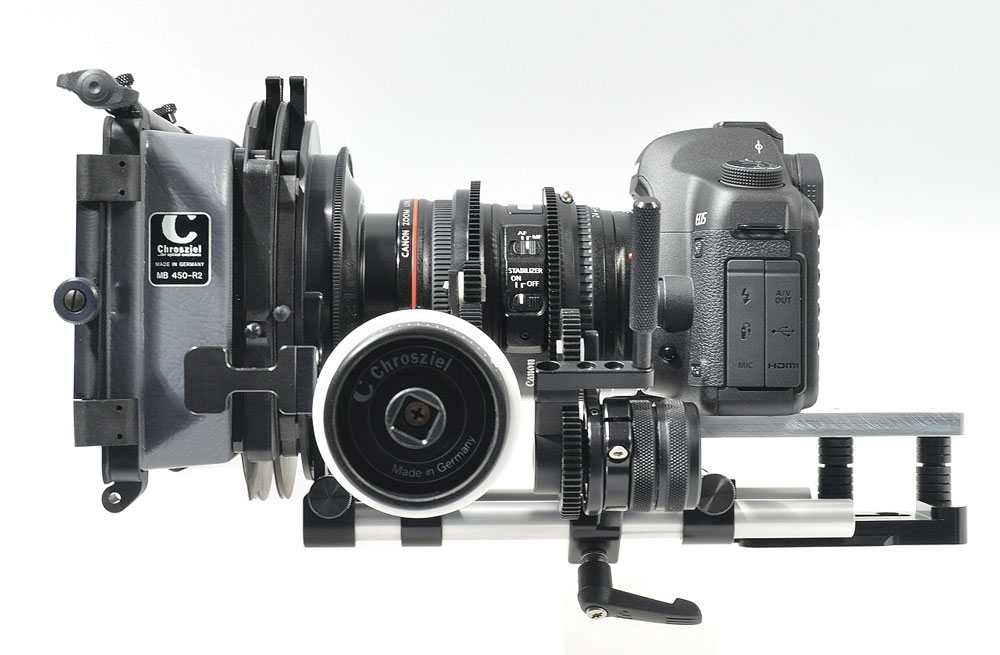 Argumentet om dybdeskarphed bider nok ikke så meget på den, der kommer fra still-verdenen, her er der jo bestemt ikke noget usædvanligt i at arbejde med dybdeskarphed, men i filmverdenen har det betydet, at der fluks er opfundet masser af grej til at forbedre ergonomien på EOS-5D Mark II, når der skydes video. Den dumper nemlig med et brag, hvis man skal ret meget andet end lige lave et lynskud af lille Peter, der scorer mål hjemme i baghaven.