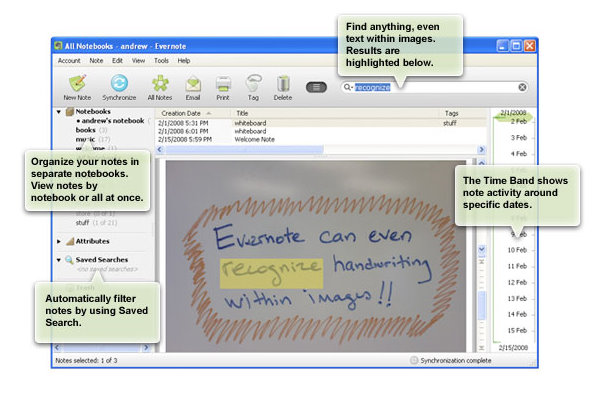 Det skulle også være muligt for Evernote at aflæse håndskrift fra fotos eller dokumenter, så det altså også bliver søgbart.