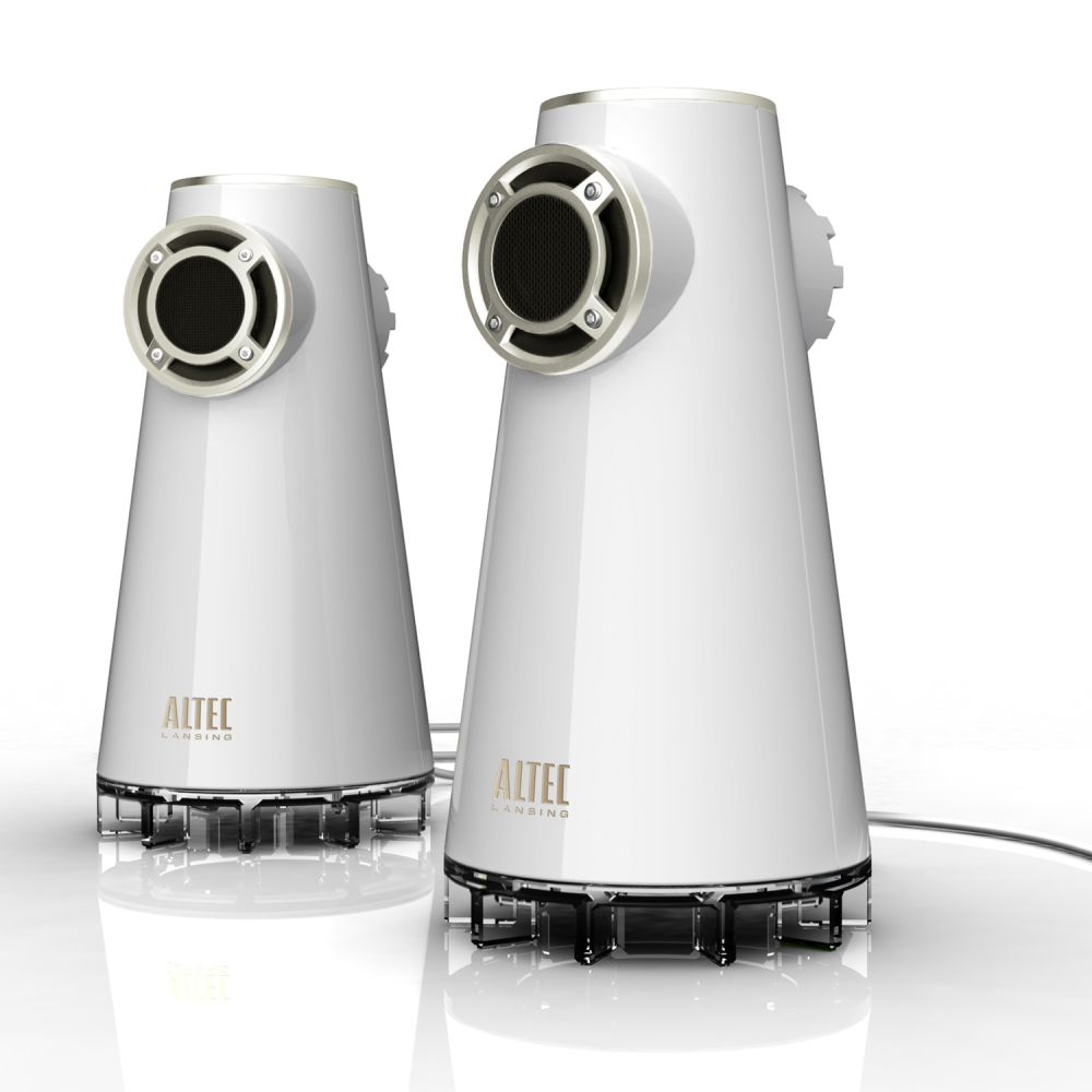 "Hvor gemmer subwooferen sig?", var vores testfamilies første reaktion, da vi tændte for Altec Lansings pianohvide stereohøjttalere med autentisk kaffekande-look.