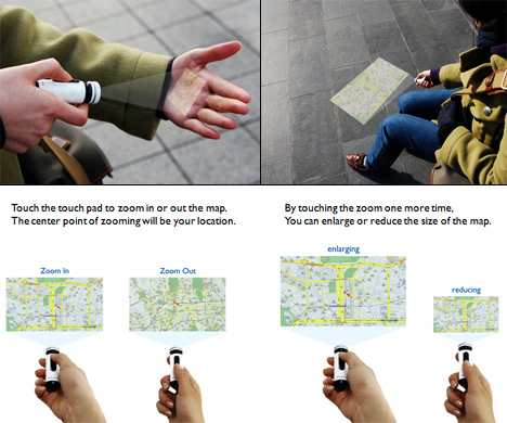 Nu er det så Maptor, som er dukket på. Det minder om en lillebitte lommelygte, som kan bruges til at projicere et kort op på en væg.