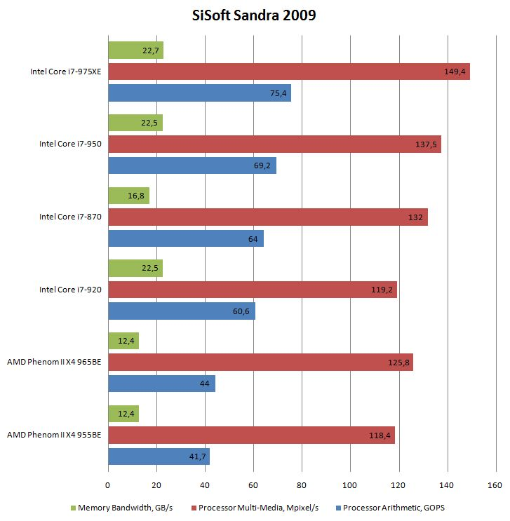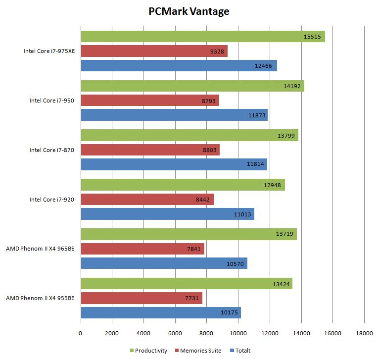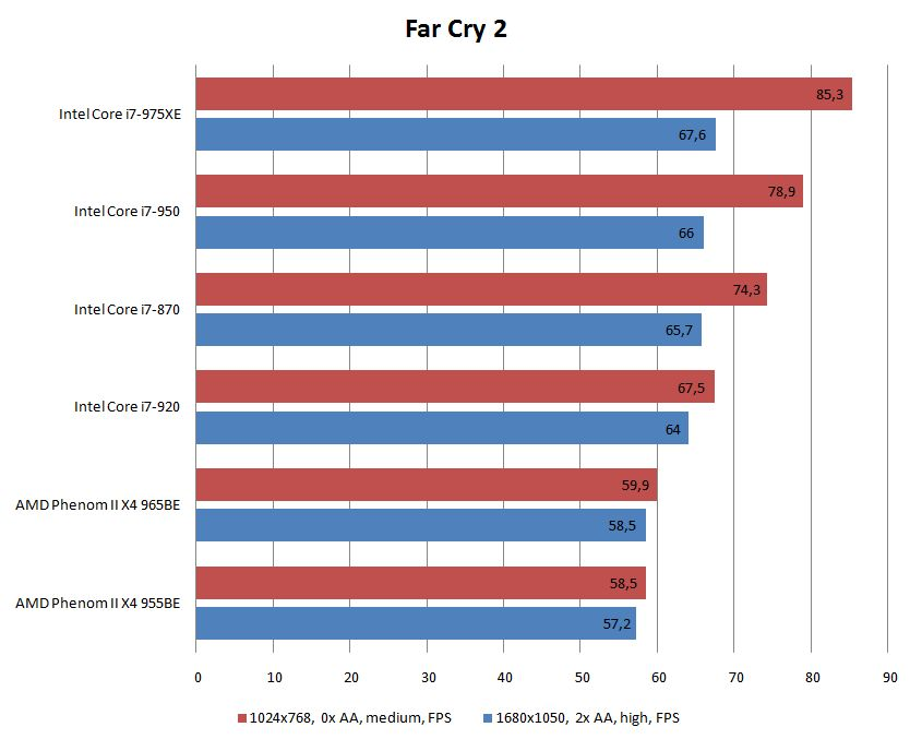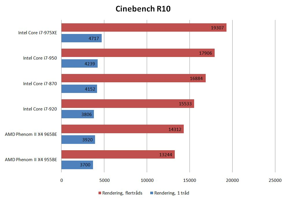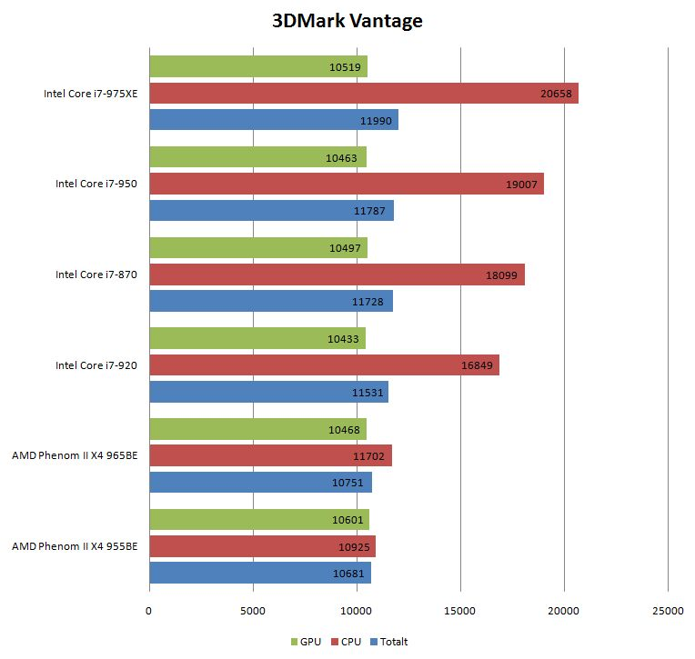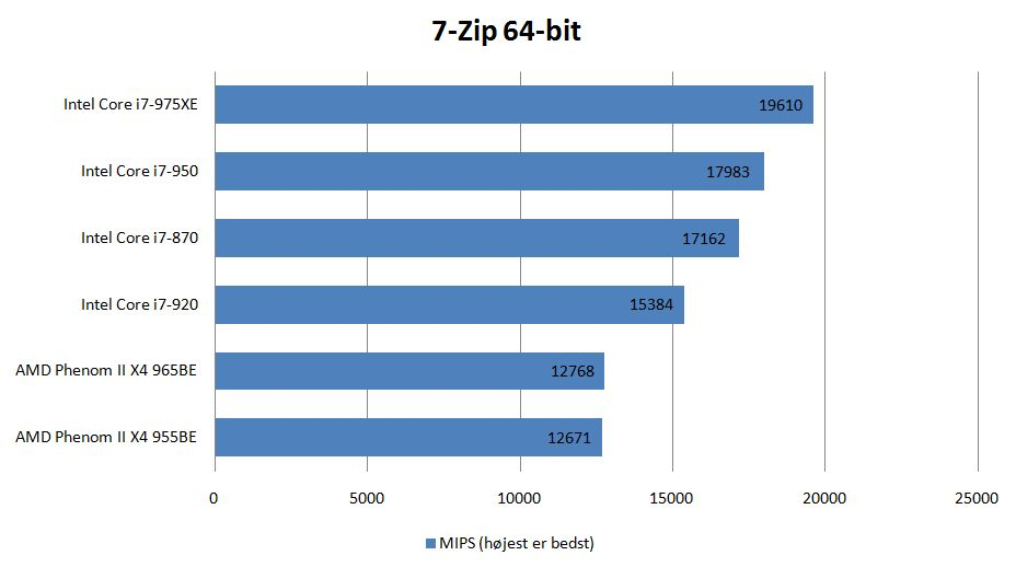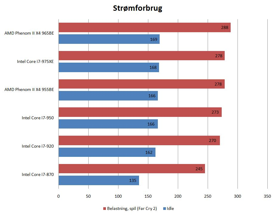 Herunder kan du se resultaterne i en vifte af syntetiske samt praktisk orienterede testprogrammer og spil for processorerne AMD Phenom II X4 955 Black Edition, Phenom II X4 965 Black Edition, Intel Core i7-870 (LGA-1156/P55), Intel Core i7-920, Core i7-950 og Core i7-975 Extreme Edition (LGA-1366/X58). Vi har desuden målt strømforbruget for den samlede testplatform - eksklusive skærm - med en standard elmåler fra Elsparefonden.