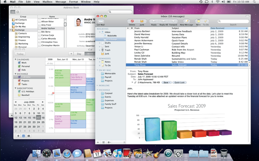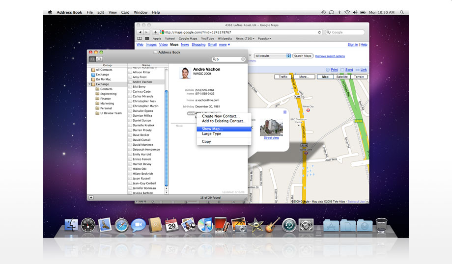 Apple har nu bygget direkte understøttelse for Microsoft Exchange Server 2007 i ind Snow Leopard, så du nemt kan koble din maskine op mod arbejdspladsens server, og få adgang til e-mail, kalender, kontaktlister og mødeindkaldelser.