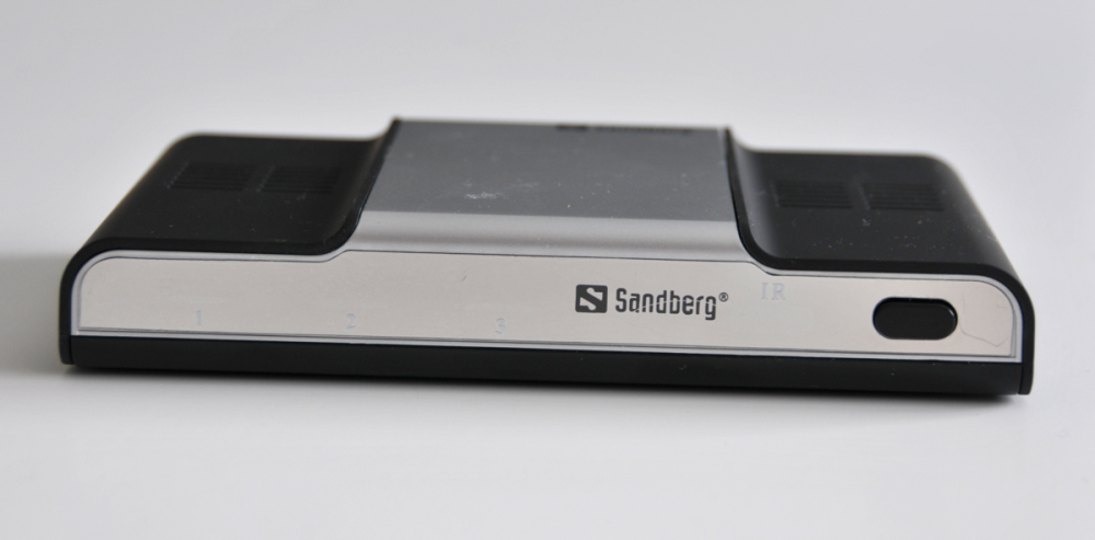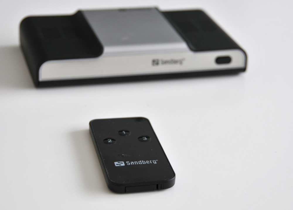 Det kan meget passende gøres med den lille plastikfjernbetjeningen, der følger med Sandbergs HDMI-switch. Den vejer stort set ingenting og er ret nem at betjene.