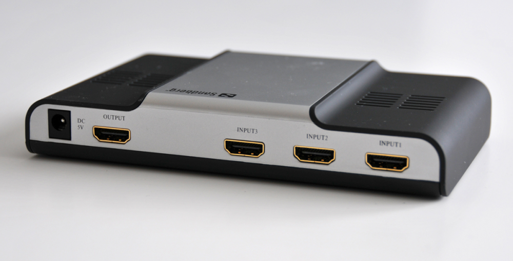 Der er plads til tre forbindelser i den HDMI-switch fra Sandberg, som vi har haft på testbænken. Det betyder, at du kan have eksempelvis en PlayStation 3, HD-videokamera og harddiskoptager tilsluttet.