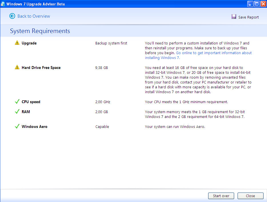 Programmet fra Microsoft vurderer, om computeren kan afvikle den krævende brugergrænseflade Aero, og om pc'en har nok ram og hurtig nok processor.