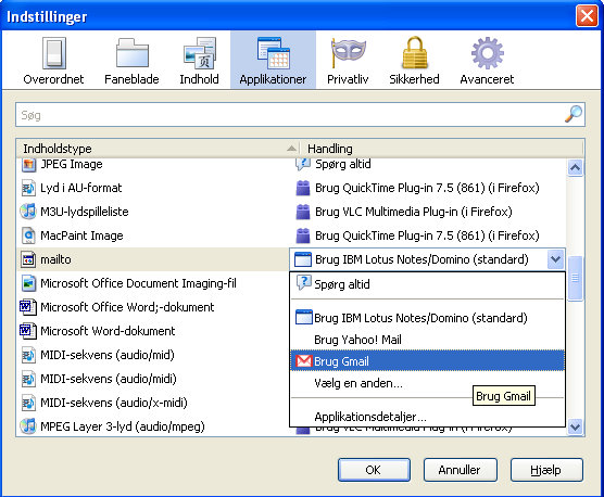 I Firefox kan du nemlig indstille klik på mailadresser (mailto) til at åbne Gmail.