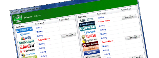 F-Secure advarer om, at kriminelle misbruger Security Essentials navn og udseende til at narre brugerne, så det, man tror er en gratis antivirus-løsning, i virkeligheden er ondsindet malware, der går under navnet Trojan.Generic.KDV.47643.