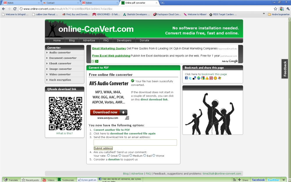 Her tog konverteringen lidt tid. Man har mulighed for at indtaste sin mailadresse, hvis man bliver træt af at vente på, at en konvertering skal køre færdigt. Så sender online-convert automatisk den konverterede fil til din indboks.