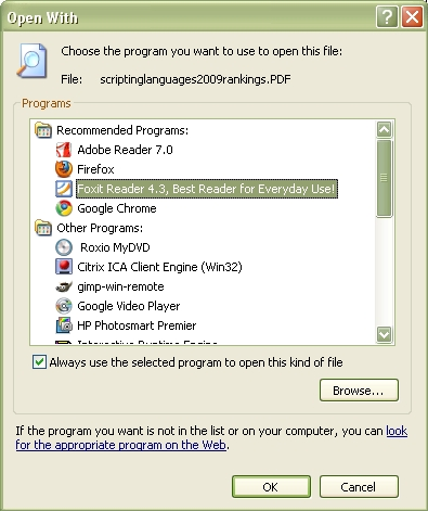 Det gør ikke noget, da det er nemt at skifte et program ud med et andet program til at være standardprogrammet til at åbne en bestemt filtype.