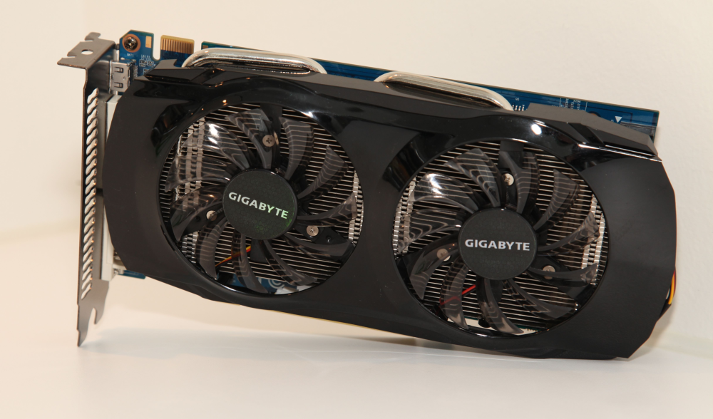 Gigabyte har måske ikke testens højeste GPU-frekvens, men der er grundlag for et væsentligt højere frekvenser, hvis du selv har mod på opgaven. Gigabytes WindForce x2-køler er nemlig testens potentielt allerbedste, med intet mindre end to indadvendte og særdeles støjsvage blæsere på basis af godt med heatpipes, der skal sikre lave driftstemperaturer.