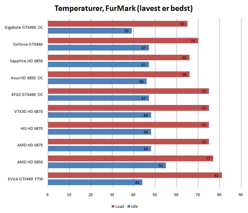 Når det så er sagt, mangler vi også at tilføje, at AMD stadig fører på ydelse kontra strømforbrug. Slutresultatet er derfor ualmindeligt svært at gøre op, for i skrivende stund koster eksempelvis et Gigabyte Geforce GTX 460 1 GB OC omkring 150 kroner mindre end det billige VTX3D Radeon HD 6870 - som til gengæld har marginalt højere ydelse og et mere moderat strømforbrug.