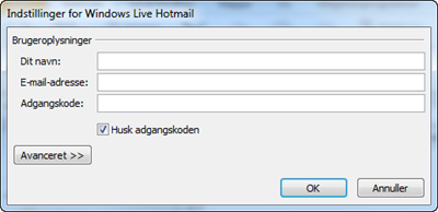 Klik på Ja-knappen. Så åbnes Indstillinger for Windows Live Hotmail-dialogboksen, hvor du angiver dit navn, din Hotmail e-mail-adresse og adgangskode.