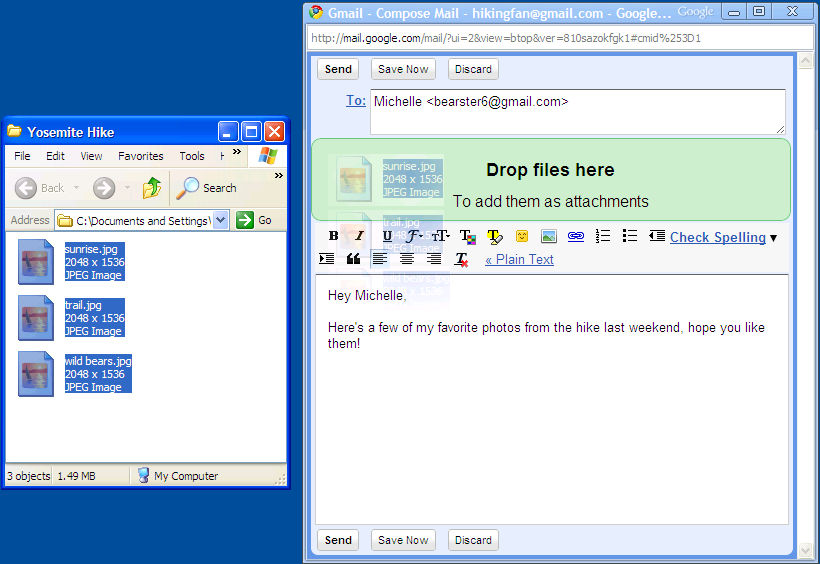 Gmail har fået en drag'n'drop-funktion, der gør det muligt at trække filer ind i e-mail. Dermed behøver du blot markere filer på eksempelvis Windows' skrivebord og hive dem ind i Gmail. Det sparer tid.