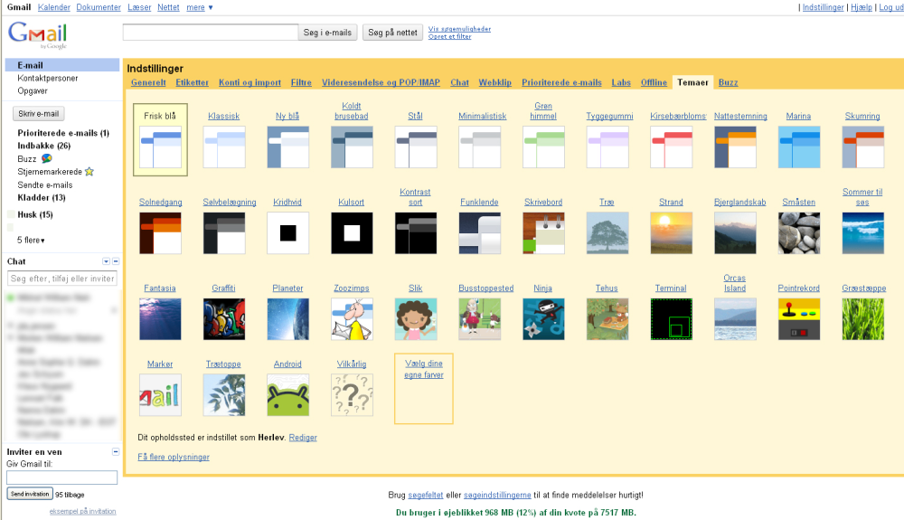 Herefter er det blot at klikke på det tema, som du kunne tænke dig, og med det samme skifter udseendet på Gmail.