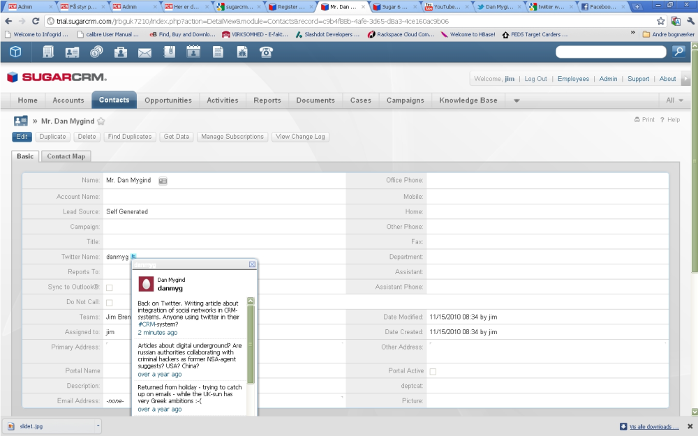 Integrationen med de sociale medier kan være med til at bryde isen og skabe en mere personlig kontakt, da det giver mulighed for dit salgs- og servicepersonale at kommentere på en kontaktpersons seneste opdateringer.