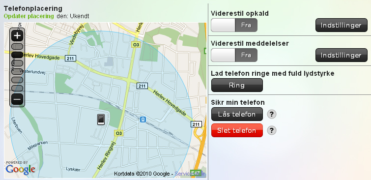 Det vil sige, at du kan sidde foran din pc og beslutte, om opkald og sms-beskeder skal viderestilles til en anden mobil. Desuden er det muligt at låse telefonen, og du kan spore den, og du kan også vælge at slette alt indhold på den, hvis den er blevet stjålet. Det er ganske enkelt genialt.