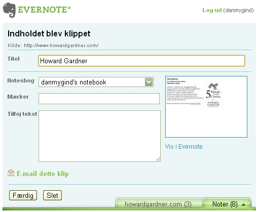Evernote gemmer indholdet af klippet sammen med et link tilbage til den originale side. Så snart du har klippet tekst, billeder og links fra nettet, kan du se dem i din notesbog på din computer eller mobil.