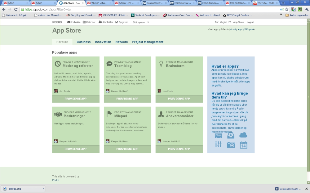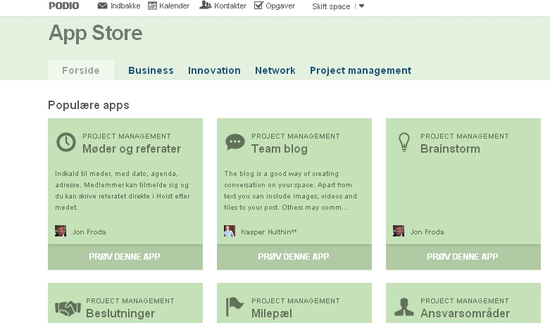 Tanken er, at brugerne hurtigt og nemt kan oprette eller genanvende allerede eksisterende apps i Podio, som understøtter præcis den proces eller opgave, som brugerne sidder med.