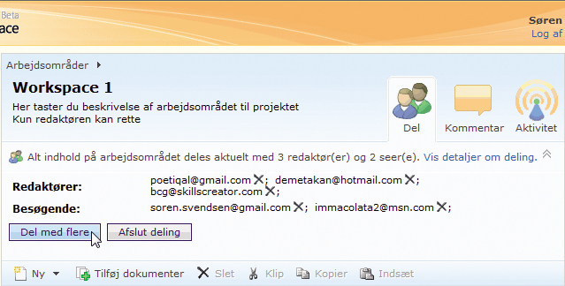 Du får faktisk funktioner nok med til, at du kan bruge Office Live Workspace-tjenesten til en masse fornuftigt samarbejde om dokumenter og kan eksempelvis sætte én person til at være redaktør og styre forløbet og resten blot til at være bidragsydere eller læsere.