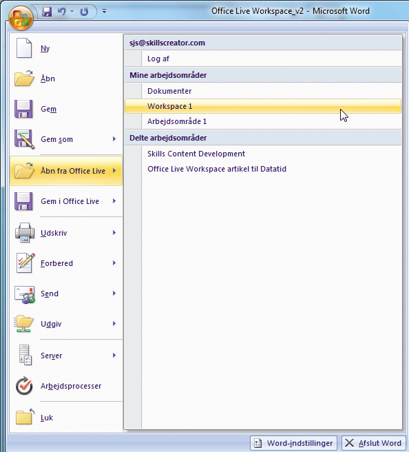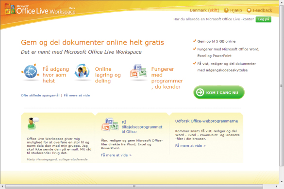 For at få tildelt dit eget Office Live Workspace skal du gå ind på workspace.officelive.com og logge på med dit eksisterende Windows Live ID - eller opret et med det samme. Det er gratis.