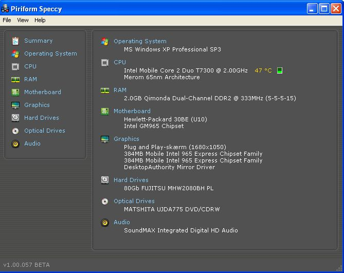Når først programmet er downloaded og installeret, er det fremover bare at åbne Speccy og vupti - så får du en opdateret beskrivelse af samtlige komponenter i din computer.