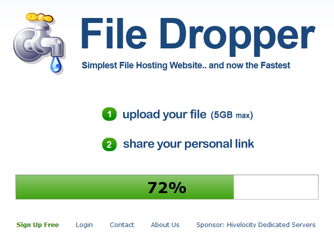 Filedropper er ekstrem minimalistisk. Du skal blot uploade din fil og så får du et link, hvor den kan downloades fra. Dine filer må fylde op til svimlende fem gigabyte, til gengæld har du ikke mulighed for at kodeordsbeskytte dine uploadede filer. Så lad være med at uploade noget, der ikke tåler at blive set af andre.