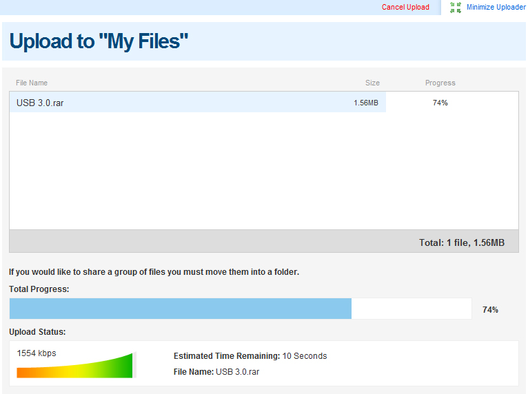 Det er nemt og hurtigt at uploade filer på nettet. Klik for større foto.