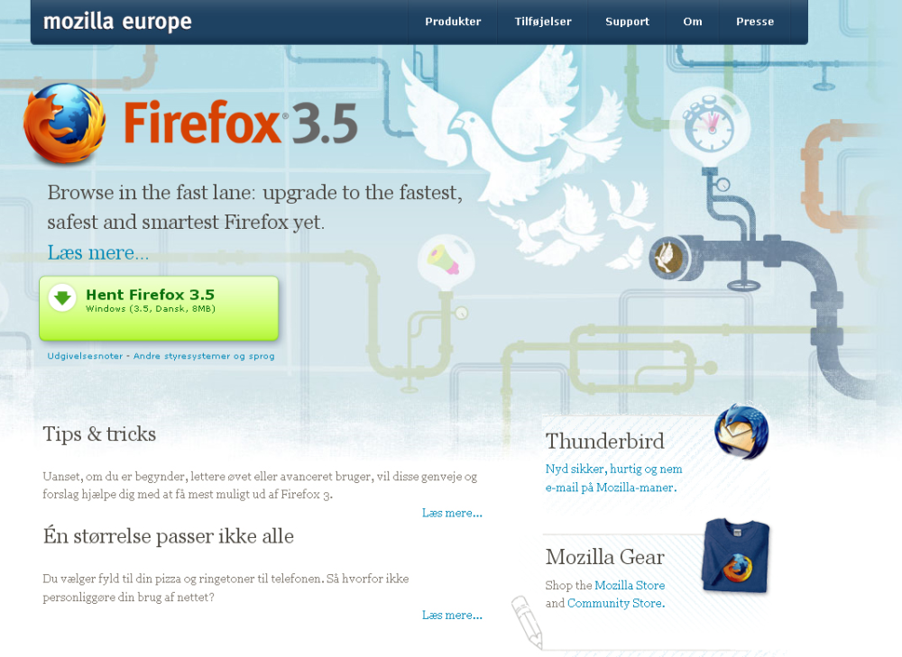 Hvis du er parat til at prøve en anden browser end Internet Explorer, er Mozilla Firefox et virkelig godt alternativ. Det skyldes blandt andet, at der er ufattelig mange muligheder for at skræddersy browseren til dine behov med gratis udvidelser. Du kan i øvrigt downloade 10 fede udvidelser til Firefox her. Internet Explorer og Firefox kan godt køre side om side på din pc.