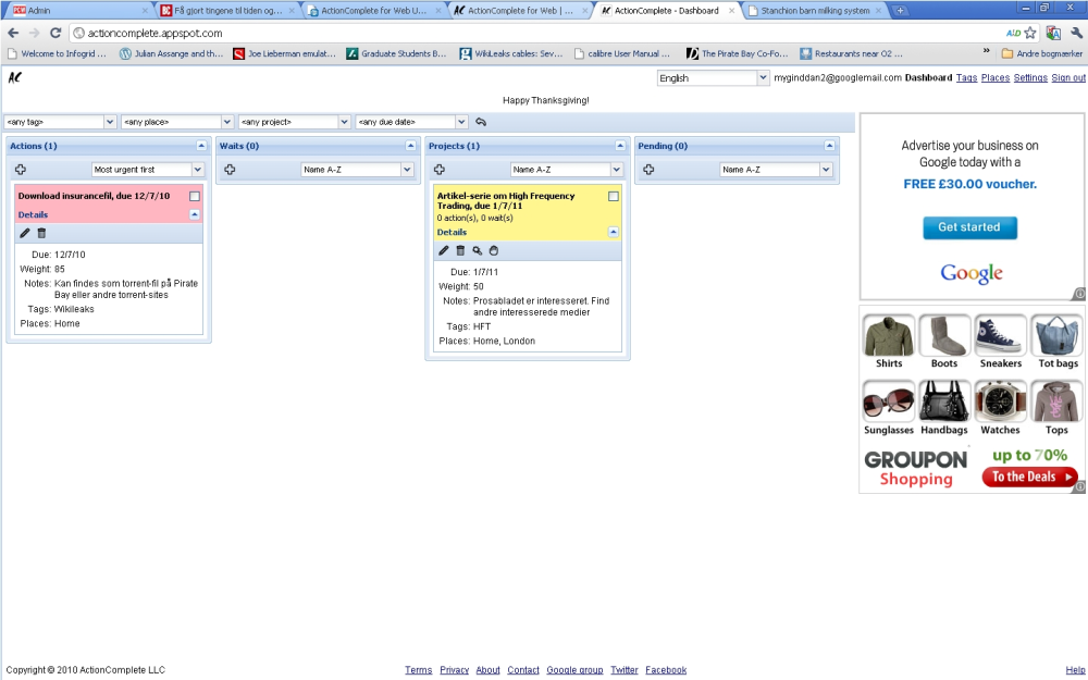 Online-systemet ActionComplete er udviklet efter principperne fra GTD-metoden. Hvis du ikke har noget imod at der vises annoncer, mens du anvender systemet, så kan du få gratis adgang til ActionComplete her.