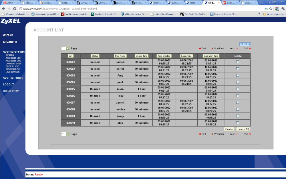 Med Zyxel-systemet følger et internt system til håndtering af bruger-sessioner, registrering af tid for hver enkelt brugersession og integration til betalingssystemer som Paypal til at håndtere betalingen. Brugerne føres først til en registreringsside, hvor de kan indtaste deres password, inden de får adgang til internettet.