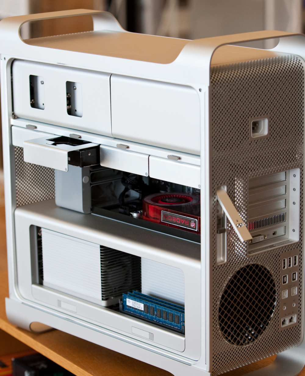 Specifikationerne er i top på Mac Pro 4.1, som er Apples bud på en arbejdsstation med seriøse hestekræfter. Kabinettet er kanontungt, men til gengæld er indersiden meget veldesignet. Her kan du godt glemme alt om kabelbundter og rod. For hardwaren er perfekt på plads og i faste rammer, og der er en fin dæmpet skuffe til harddisk. Computeren har hele otte processorkerner og seks gigabyte ram. Derfor er maskinen suveræn til avanceret video- og billedredigering, og det er uden tvivl himmerige for ægte Apple-fans.