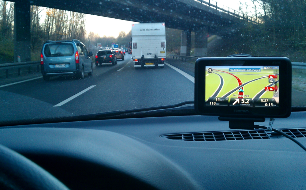 Den seneste måneds tid har vi kørt med GPS'en, og den har været virkelig dygtig til at gennemskue bilkøer, vejarbejde og andre forhindringer.