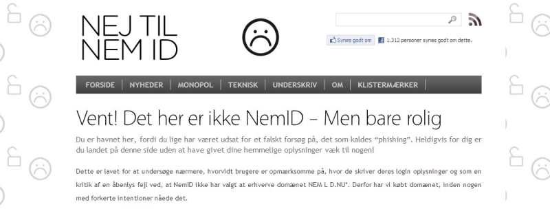 Rasmus Porsager udførte onsdag morgen et forsøg, hvor han med en falsk NemID-side på domænet nemld.nu undersøgte, hvor mange af 30 bekendte med forstand på it, der ville hoppe på en phishing mail, der lokkede ofrene til at indtaste deres brugernavn og kodeord på den falske internetside.
