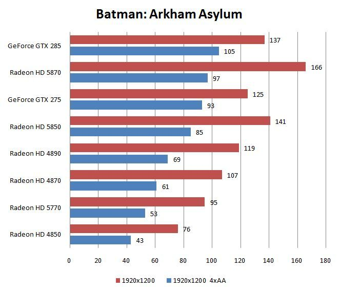 Det kraftigste enkeltprocessorkort i HD 5000-serien udgøres af 5870, der tager kegler i vores test og er den hurtigste løsning i samtlige spil med undtagelse af Batman: Arkham Asylum, der traditionelt favoriserer Nvidia-kort.