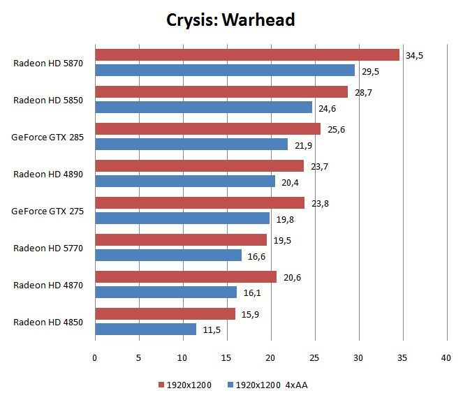 Hvor 4850 i den tandudtrækkende Crysis-benchmark opnår 11,5 fps (frames per second), præsterer 5850 hele 24,6 fps - altså tæt på den ganske acceptable, flydende spilafvikling, som vi normalt anslår til 30 fps.