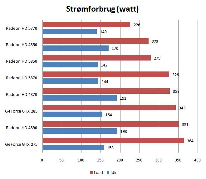 Strømforbruget er ifølge tal fra ATI cirka det samme for 5850 og 5870.