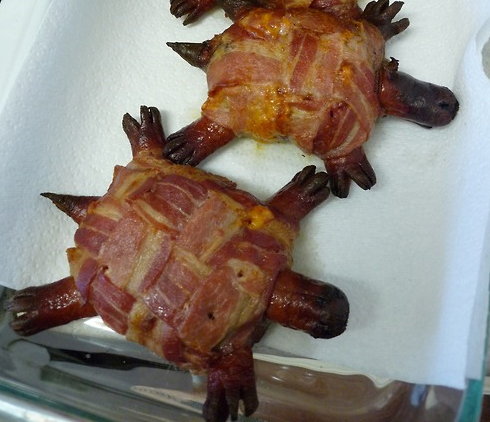 Hvad siger du eksempelvis til en "skildpadde-burger", der består af hakket oksekød tilsat cheddar ost, som er pakket ind i en baconskal.