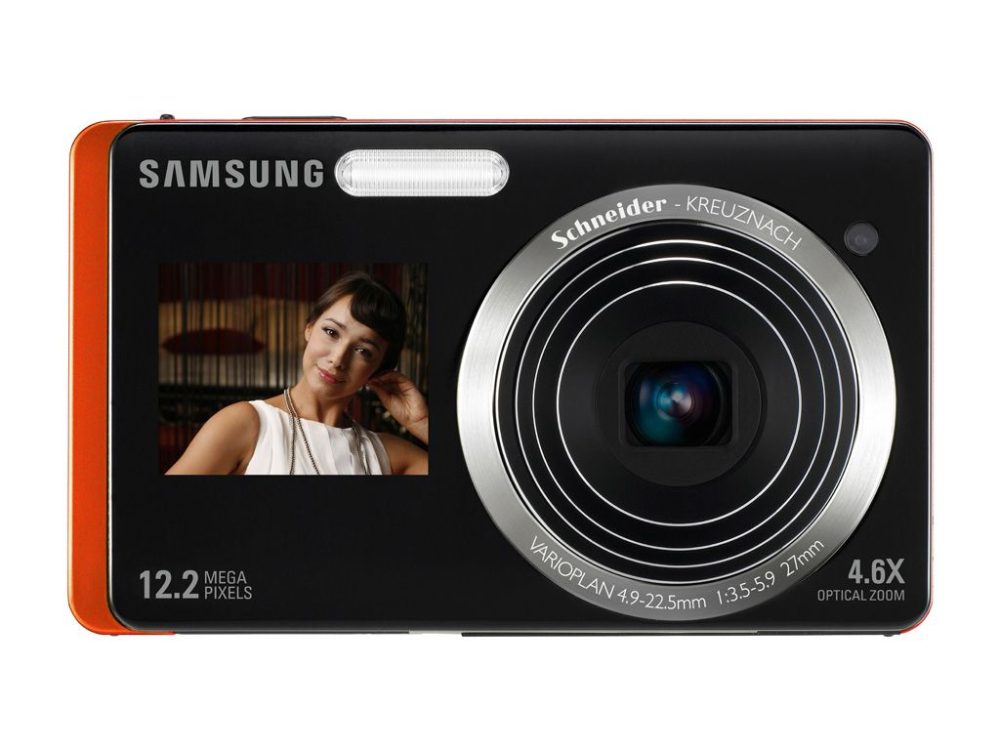 Men Samsung ST550 gemmer på en regulær verdensnyhed, som først bliver synlig, når man tænder apparatet: På fronten, til venstre for objektivet, lyser en lille LCD-skærm op.