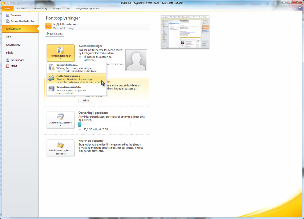 Til en enkelt mappe eller to er det fint nok at tildele rettigheder på mappeniveau, men skal din kollega for alvor kunne tage over på din indbakke og din kalender, mens du f.eks. er på ferie, eller være med til at passe en fælles postkasse som du har ansvaret for, skal du i stedet anvende stedfortræder-funktionen i Outlook.