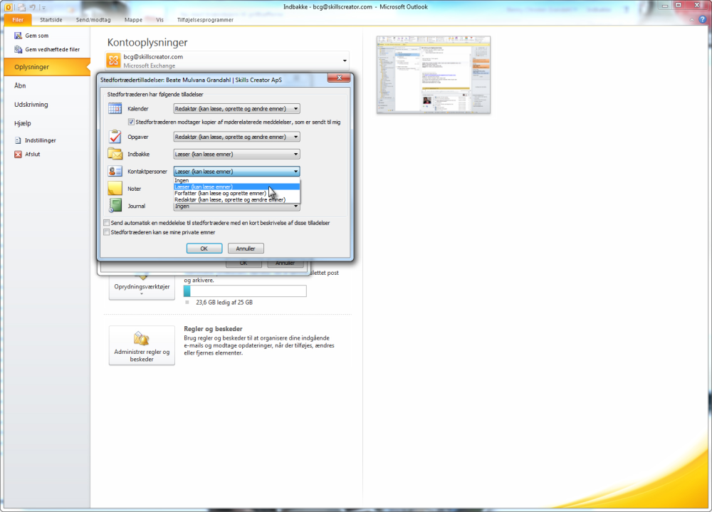 Det vil sige, at du også kan åbne din kollegas postkasse, opgaveliste og noter - hvis du vel at mærke har rettigheder til det.