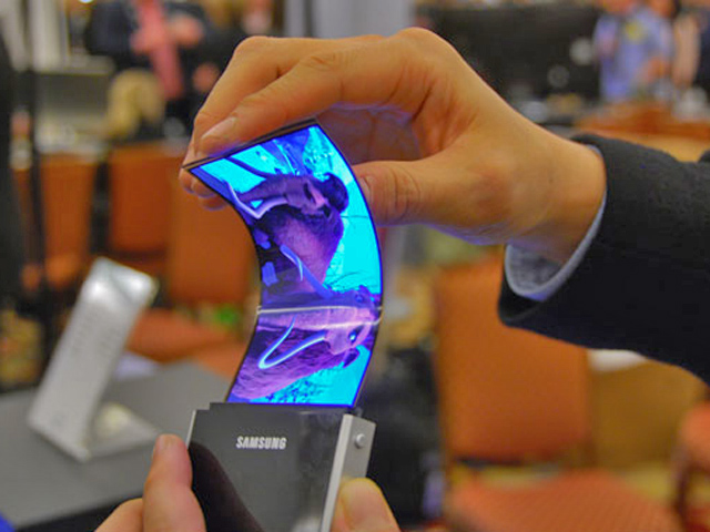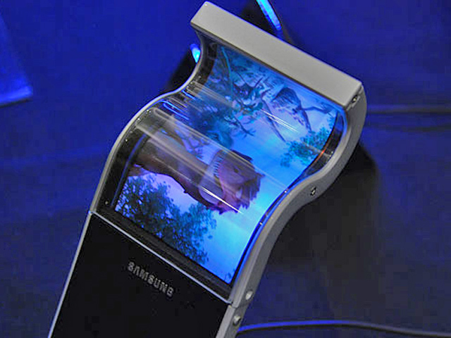Koreanerne er længst fremme med en 4,5-tommer skærm med 840 x 480-pixel opløsning, der kan bøjes i det ekstreme og endda rulles sammen, så den ikke måler mere end en centimeter i diameter.