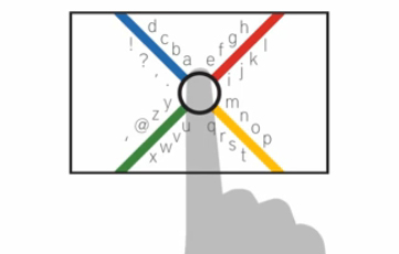 I stedet for et tastatur i traditionel udformning mødes du med 8pen af en firkant med et kryds på mobilskærmen. På krydset er placeret bogstaver, og du kan lade fingeren glide ud langs krydsets kanter og på den måde vælge bogstaver.