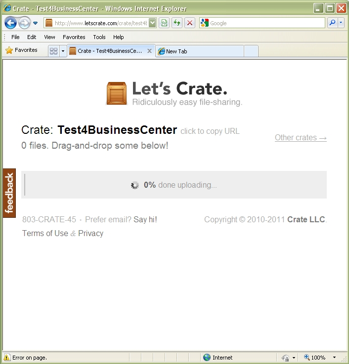 En læser har gjort Business Center opmærksom på, at letscrate.com's ellers udmærkede fildelingstjeneste ikke fungerer med Internet Explorer 8.