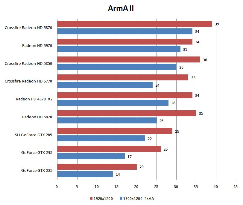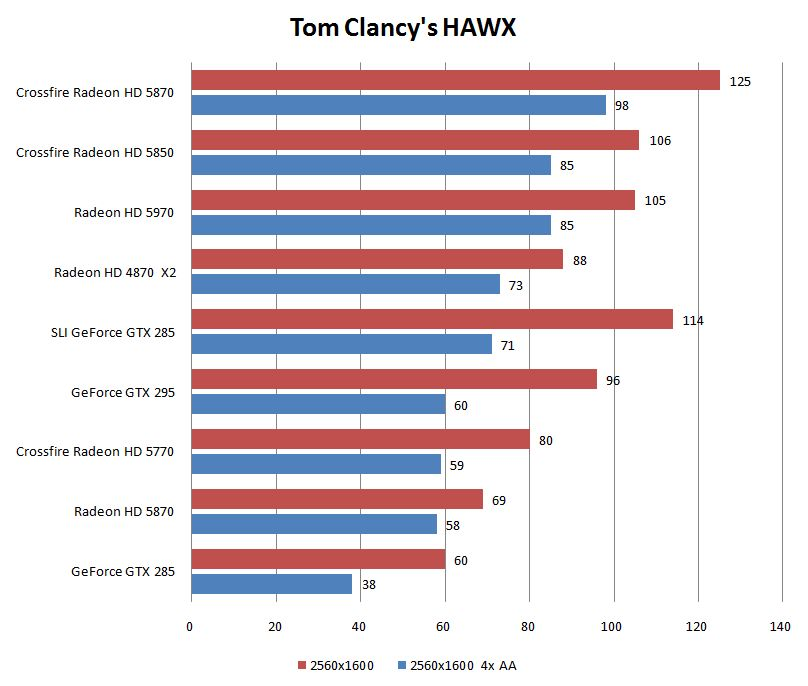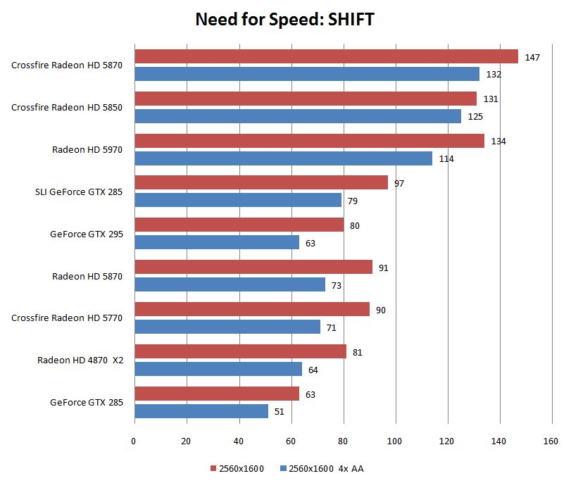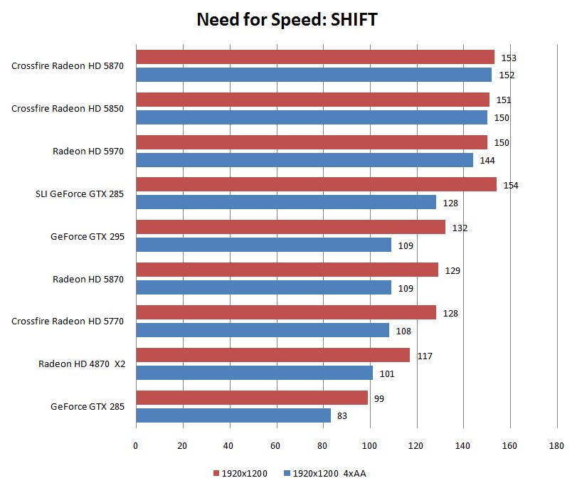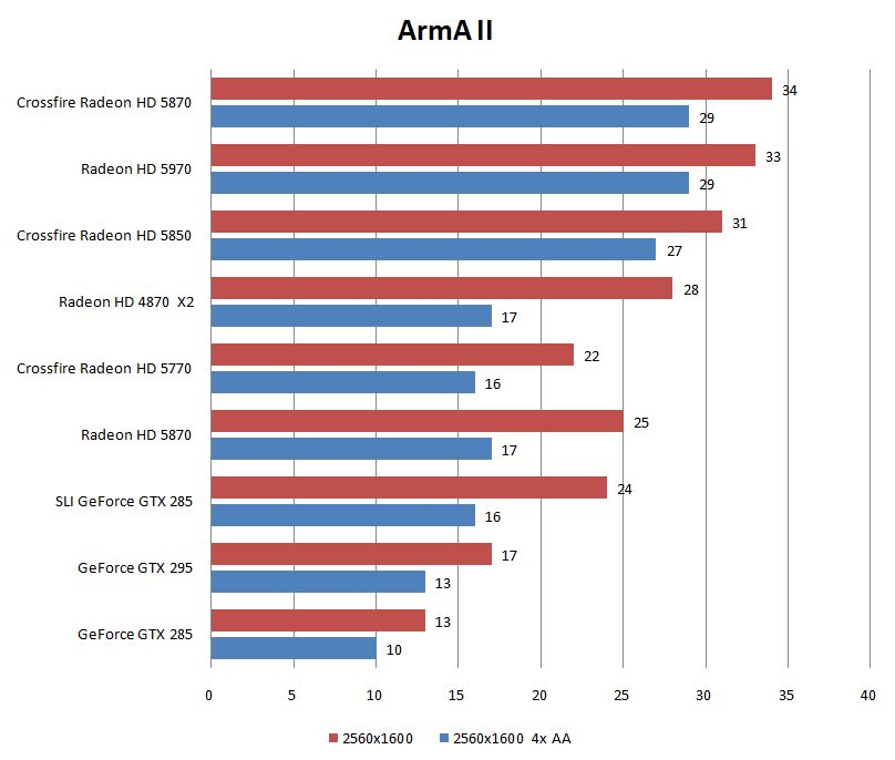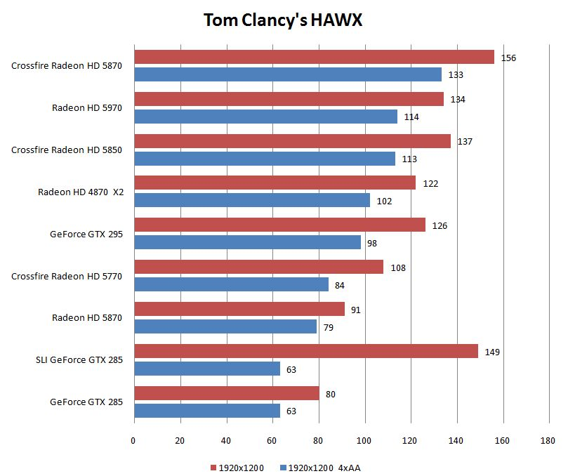 Med 5970-kortet lod det sig aflæse på ydelsen, at den ene grafikprocessor ikke deltog i det adrenalinpumpende rallyræs, så ydelsen var nede på niveau med et enkelt 5870. Sidenhen løsgav AMD dog en såkaldt hotfix, en særlig Catalyst-driver, der i netop dette spil bragte Radeon HD 5970 op på det ydelsesmæssige niveau, kortet er i stand til at bedrive.